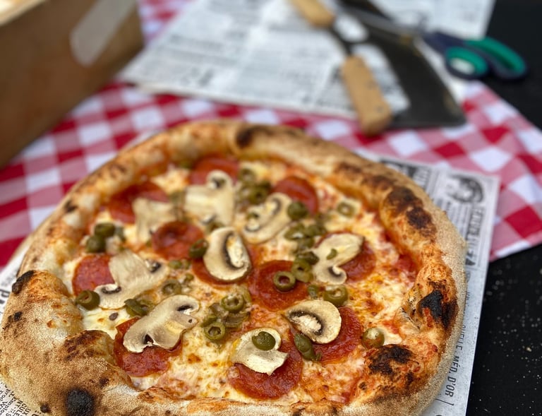 Disfruta de nuestras pizzas recién horneadas, con la magia de elegir tus propios ingredientes y ver cómo se prepara en vivo nuestra pizza... un sabor único y auténtico recien salido del horno!.